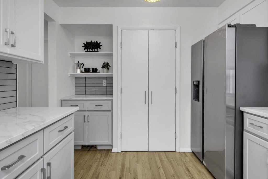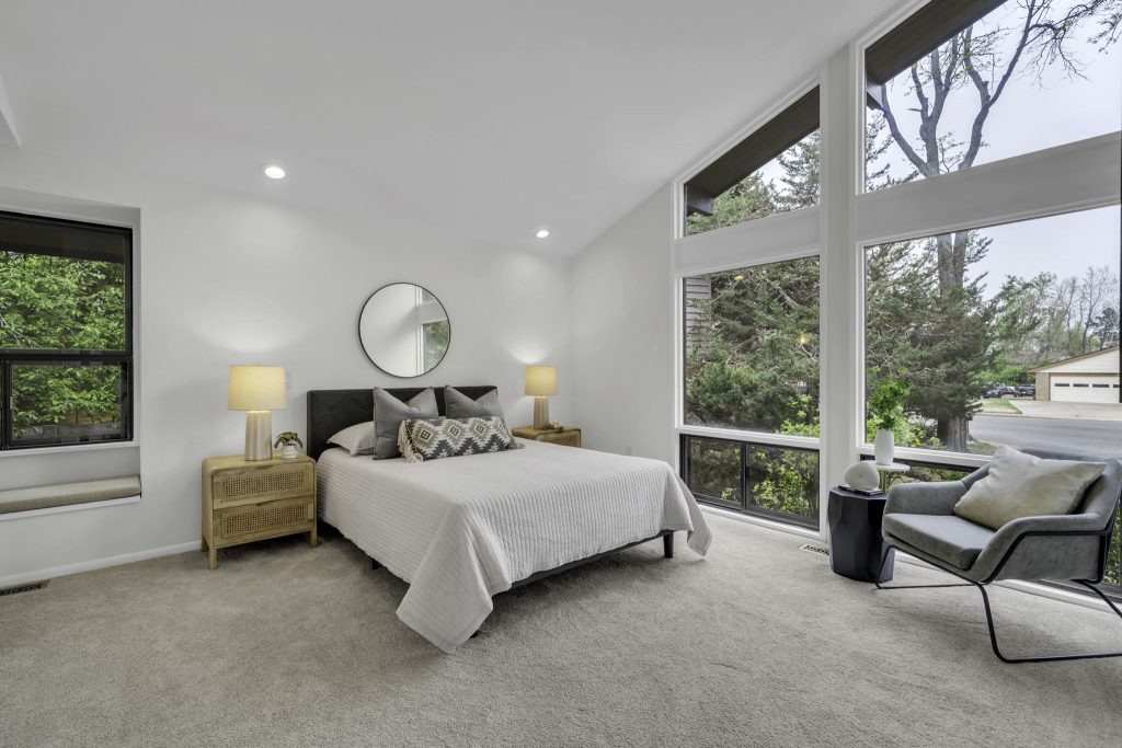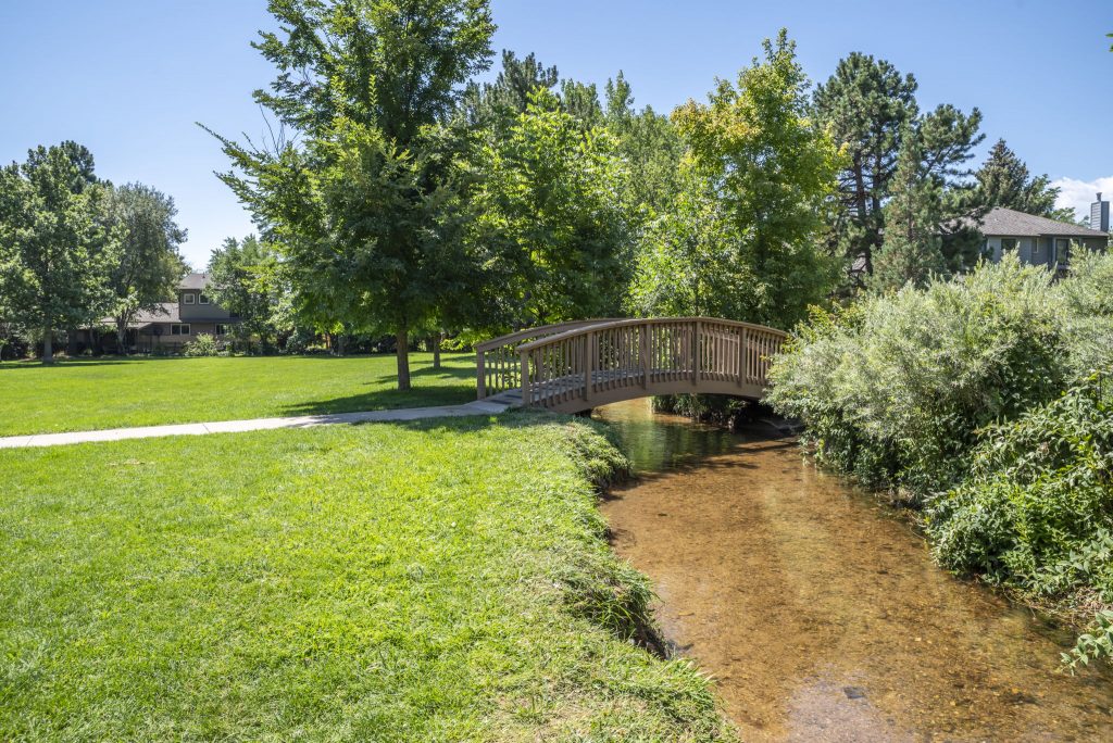 Once in a great while, a location comes along that stands out as truly special. Nestled on the quietest of cul de sacs and with a tucked away neighborhood park and playground steps away. An almost 12,000 sq ft flat lot surrounded by a lush tree canopy with the Farmers Irrigation canal running along the back of the site. Custom seventies ranch refreshed and ready to move in! New kitchen with quartz counters, new appliances, designer lighting, and special touches. Vaulted ceilings, skylights, hardwood floors. Coveted main floor primary bedroom with dual closets, a private refreshed bath, window seat, and vaulted ceiling with a wall of south facing glass. Separate wing for secondary main floor bedrooms with laundry and shared bath. Covered back patio – private and ideal for al fresco dining and fun. Expansive lawns for outdoor games and relaxation. Daylight basement with south facing windows that flood the cozy rec room with sunlight. Stone fireplace and wet bar downstairs – great for parties, movies, gaming. Fourth bedroom (non conforming) and full bath also downstairs. Oversized and extra deep two car garage – plus additional outdoor storage area adjacent to garage – ideal for your outdoor toys and gear. The neighborhood is friendly and quiet with three parks and two playgrounds. A tucked away gem in North Boulder!